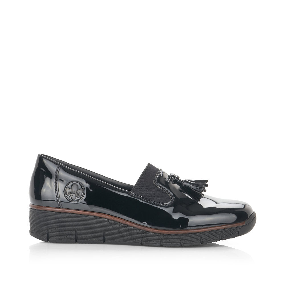 Style et confort vont de pair. Ces chaussures Rieker bénéficient d'une construction cousue traditionnelle qui leur confère souplesse et durabilité, tout en assurant un bon maintien. L'empiècement élastique facilite l'enfilage et le retrait, et le pompon décoratif apporte une touche d'élégance et de fraîcheur. Le talon compensé léger et la semelle amortissante offrent une démarche stable et confortable. La semelle intérieure moelleuse amortit chaque pas, du matin au soir. Ces chaussures polyvalentes sont un choix sûr pour la saison.